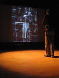 I stumbled upon Simon Biggs’ digital projection installation called reRead. (you can watch how it works here: https://www.youtube.com/watch?v=OSias0PZ6js).